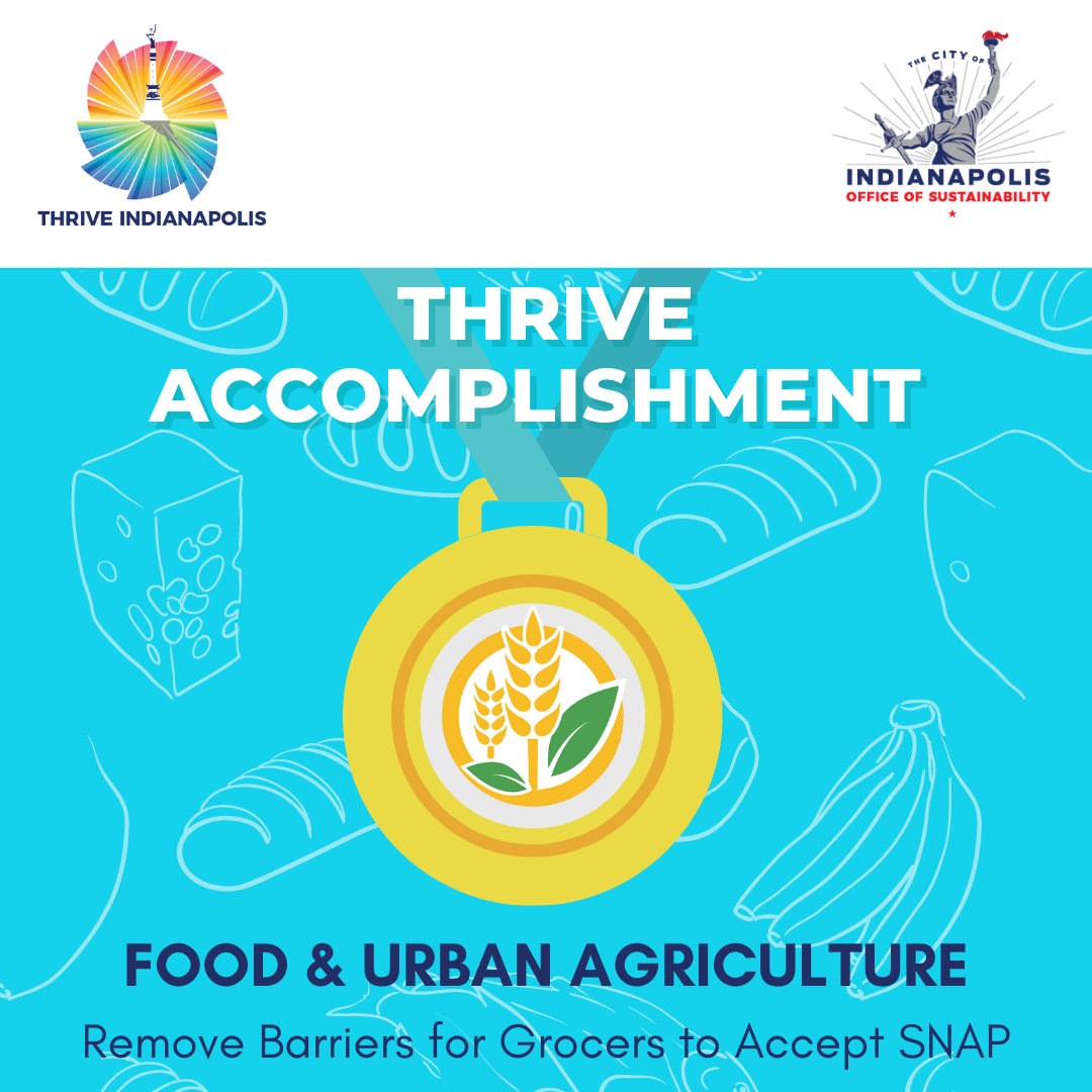 In addition to lowering barriers to SNAP access, extra importance rests on equipping local stores with tools to accept SNAP. In 2021, the City of Indianapolis partnered with Indy Local Grocers Coalition (ILGC) to invest $290,000 at ILGC affiliates to accept SNAP benefits. ILGC stores are primarily in low food-access areas making ensured SNAP acceptance paramount to affordable access to healthy food. SNAP certification requires stores to stock certain healthy foods. ILGC stores that accept SNAP provide a neighborhood outlet for families to redeem food benefit dollars contributing to overcoming food insecurity in our city.